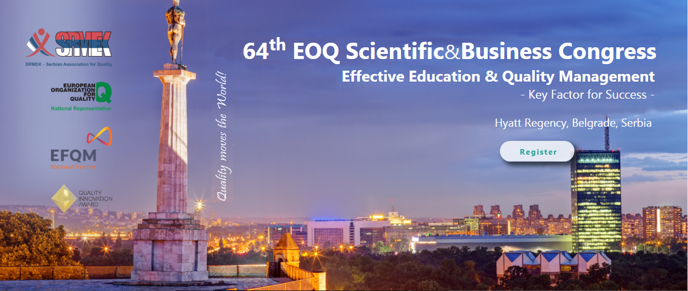 We remind you that Serbian Association for Quality - SRMEK will be hosting the 64th EOQ Scientific&Business Congress 2020, for the first time in Belgrade, Serbia, June 16 - 17, 2020.